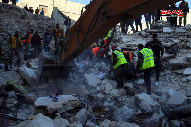 Сегодня на рассвете в городе Алеппо в результате обрушения пятиэтажного дома в районе Маади погибли пять человек, в том числе ребенок и две женщины, ранен один.