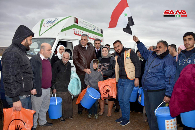 Корреспондент агентства САНА сообщил, что армейские подразделения доставили семьи, которые жили в суровых условиях под контролем террористических организаций, в центры временного проживания, оказав им продовольственную и медицинскую помощь. Армия расчищает город от мин и взрывных устройств, чтобы сохранить жизни гражданских лиц и обеспечить необходимые условия для подготовки к возвращению жителей.