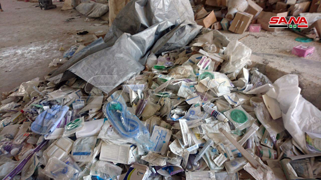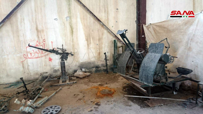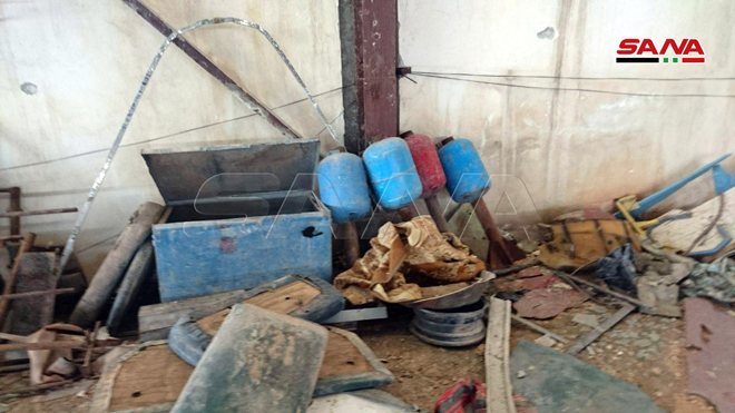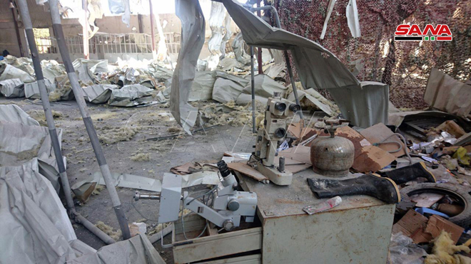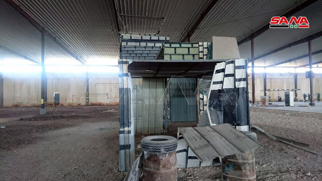 Съемочная группа агентства САНА побывала на текстильной фабрике в поселке Кафр-Джум на юго-западе провинции Алеппо, которую террористы превратили в командный пункт, тренировочную базу и мастерскую по производству снарядов.