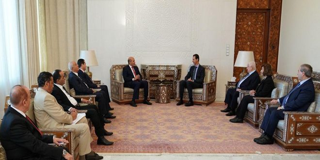 Президент САР Башшар Аль-Асад принял ливийскую делегацию, возглавляемую заместителем премьер-министра Абдеррахманом Аль-Ахиришем и министром иностранных дел и международного сотрудничества Абдель-Хади Аль-Хувейджем.