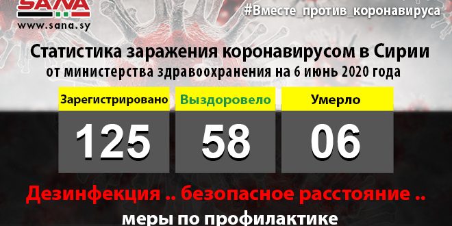 Министерство здравоохранения САР объявило о пяти случаях выздоровления от COVID-19. Выявлен новый случай заражения у шофера, который работает на трассе, ведущей в Иорданию.