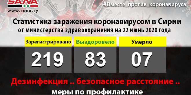 Министерство указало, что общее количество больных короновирусом достигло 219 человек, из них 83 человека излечились, 7 скончались.