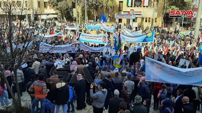 В городах Хасаке и Эль-Камышлы состоялись митинги в поддержку предстоящих президентских выборов, а также территориальной целостности и суверенитета Сирии.