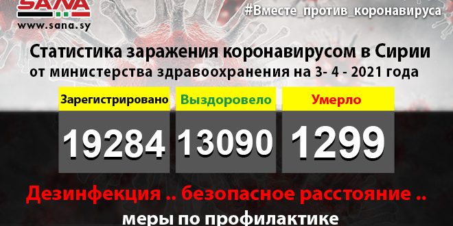 Ведомство отметило в заявлении, копию которого получило агентство САНА, что число заболевших, зарегистрированных в стране, на данный момент составило 19 284 человека, из которых 13 090 были вылечены, а 1 299 скончались.