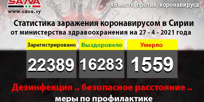 Ведомство в заявлении, копию которого получило агентство САНА, указало, что число зарегистрированных в стране инфицированных коронавирусом на данный момент достигло 22 389, из них 16 283 человека выздоровели, а 1 559 скончались.