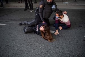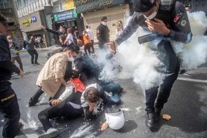 Как сообщило агентство Франс Пресс, по меньшей мере 100 протестующих были схвачены при попытке пройти на площадь Таксим, улицу Истикляль и в другие места, отметив, что полицейские нападали на людей, применяя силу для их разгона.
