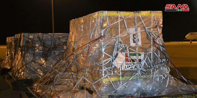 В Дамаск прибыл самолет из ОАЭ с гуманитарной медицинской помощью, предоставленной отделением Эмиратского общества Красного Полумесяца в рамках поддержки сектора здравоохранения Сирии в борьбе с распространением коронавируса.