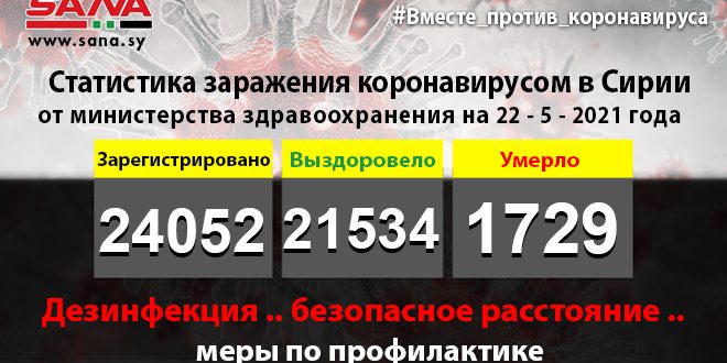 В заявлении ведомства, копию которого получило агентство САНА, указано, что число инфицированных коронавирусом, зарегистрированных в стране, на данный момент достигло 24 052, из них 21 534 человека выздоровели, а 1 729 умерли.