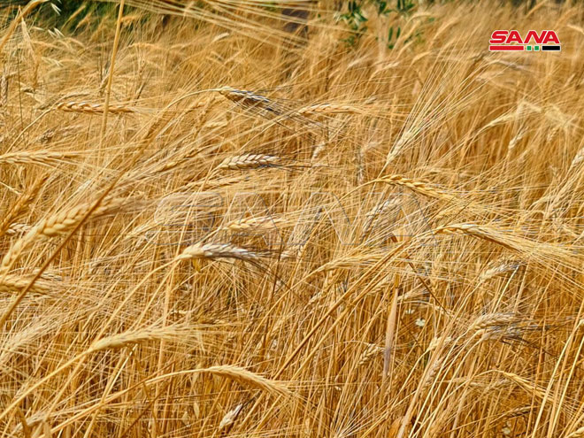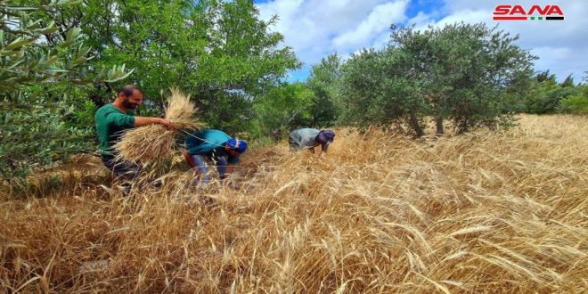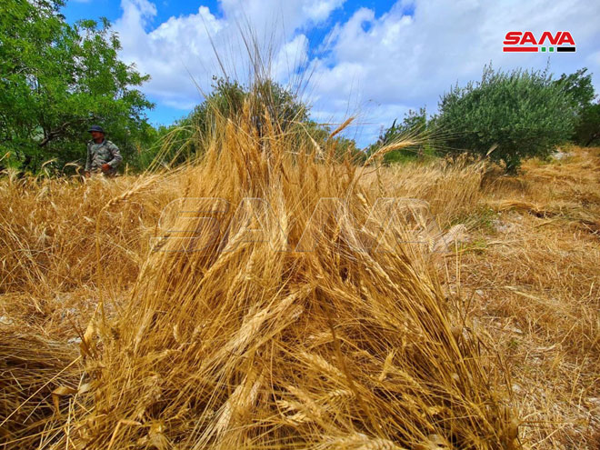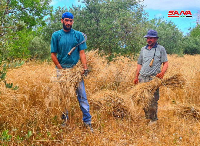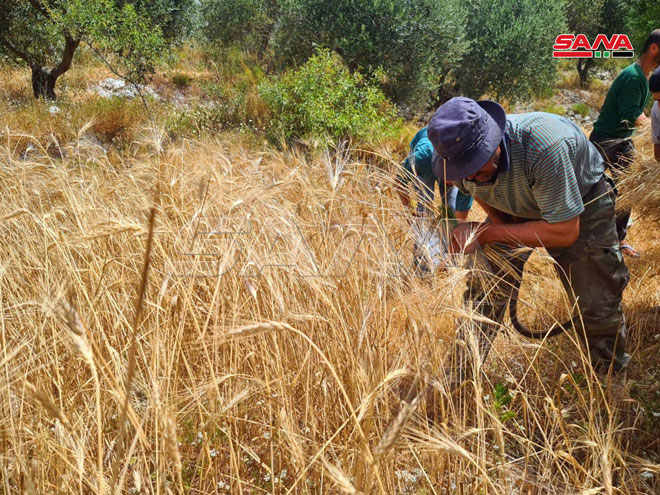 Жатва пшеницы в селении Хирбет Ас-Санасель в районе Банияс (фото)