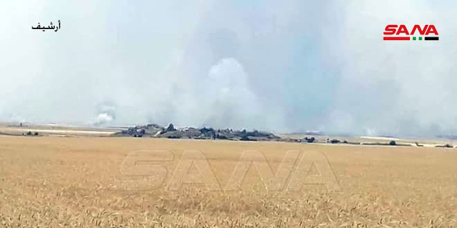 Местные источники сообщили агентству САНА, что пожары вспыхнули на больших площадях полей, засеянных пшеницей и ячменем, в окрестностях города Тель-Рифаат в результате преднамеренного ракетного и артиллерийского обстрелов, продолжающихся со вчерашнего вечера до рассвета.