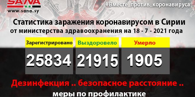 В заявлении ведомства, копию которого получило агентство САНА, указано, что число зарегистрированных в стране инфицированных коронавирусом на данный момент достигло 25 834, из них 21 915 человек вылечились, а 1 905 умерли.