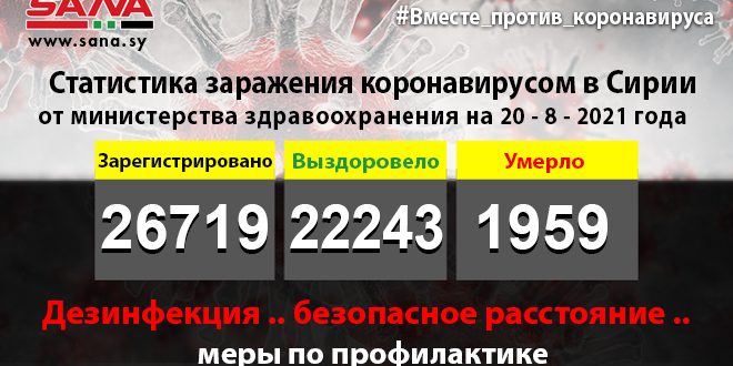 В заявлении ведомства, копию которого получило агентство САНА, указано, что число инфицированных, зарегистрированных в стране, на данный момент достигло 26 719, из них 22 243 человека вылечились, а 1 959 умерли.