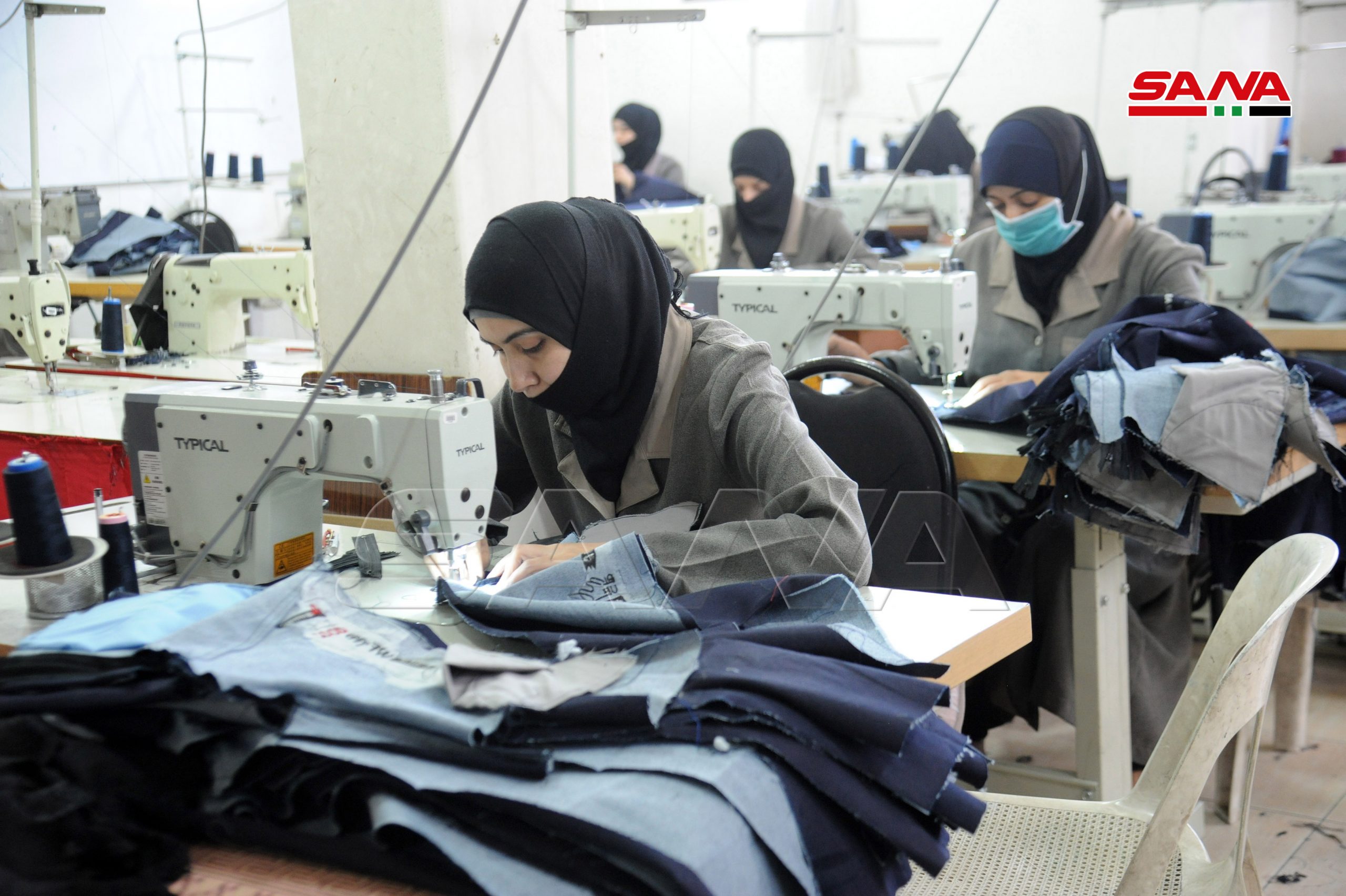 Руководитель благотворительной организации в Думе Мухаммад Баккар подчеркнул, что в мастерской в настоящее время работают 60 женщин, они за 4 месяца прошли обучение и курсы повышения квалификации, а потом перешли к производству в мастерской, которая насчитывает около 100 швейных машин.