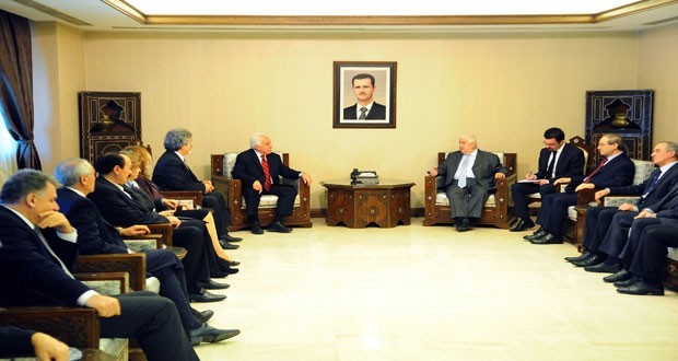 Заместитель председателя Совета министров, министр иностранных дел и по делам эмигрантов САР Валид Аль-Муаллем принял делегацию представителей политических партий, общественных деятелей и парламентариев Турции во главе с генеральным секретарем турецкой Рабочей партии Догу Перинчеком.