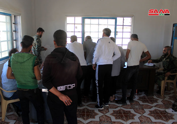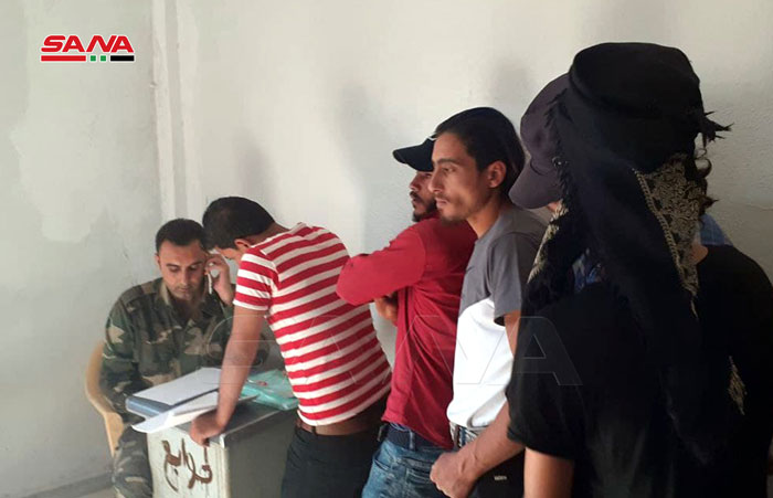 Корреспондент агентства САНА в городе Мзейриб сообщил, что с раннего утра десятки боевиков, разыскиваемых лиц и те, кто не прошел службу в армии, начали прибывать в центр для урегулирования своего статуса и сдачи оружия.