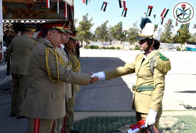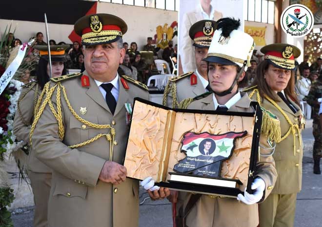 Под эгидой президента САР Башшара Аль-Асада, главнокомандующего армией и Вооруженными силами, и по случаю 48-й годовщины Октябрьской освободительной войны сегодня состоялся очередной выпуск курсантов Военного училища для девушек.