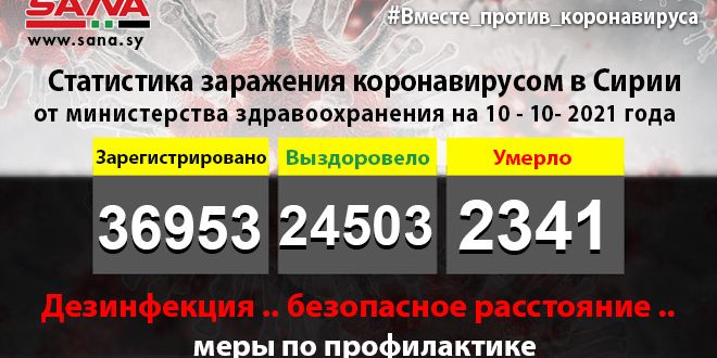 В заявлении ведомства, копию которого получило агентство САНА, указано, что число инфицированных, зарегистрированных в стране, на данный момент достигло 36 953, из них 24 503 человека вылечились, а 2 341 умер.