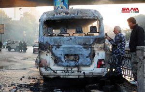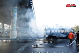 Военный источник сообщил агентству САНА, что сегодня утром около 06:45 во время следования автобуса вблизи Джиср Ар-Раис в Дамаске сдетонировали два взрывных устройства, заранее заложенных террористами в автобус, что привело к гибели 14 человек и ранению еще нескольких.