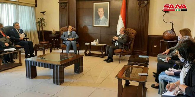 Министр местного самоуправления и экологии САР Хусейн Махлюф обсудил с представителем Фонда ООН в области народонаселения (ЮНФПА) Иядом Насром механизмы развития двустороннего сотрудничества в области альтернативной энергетики и экологии.