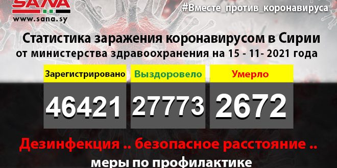 В заявлении ведомства, копию которого получило агентство САНА, говорится, что число инфицированных, зарегистрированных в стране, на данный момент достигло 46 421, из них 27 773 человека вылечились, а 2 672 умерли.
