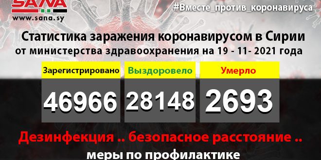 В заявлении ведомства, копию которого получило агентство САНА, говорится, что число инфицированных, зарегистрированных в стране, на данный момент достигло 46 966, из них 28 148 человек вылечились, а 2 693 умерли.