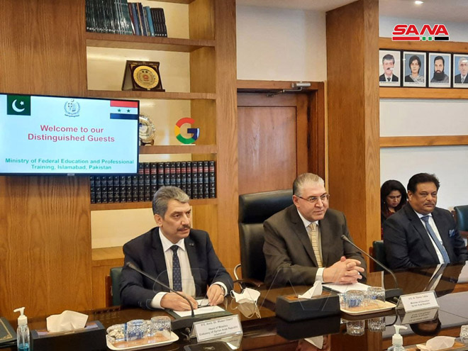 Со своей стороны министр Шафкат Махмуд подтвердил стремление правительства Пакистана укреплять связи с Сирией в культурной и образовательной сфере, отметив важную новаторскую роль Сирии под руководством президента Башшара Аль-Асада в регионе.