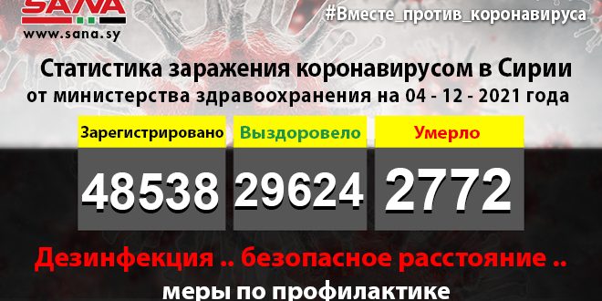В заявлении ведомства, копию которого получило агентство САНА, говорится, что число инфицированных, зарегистрированных в стране, на данный момент достигло 48 538, из них 29 624 человека вылечились, а 2 772 умерли.