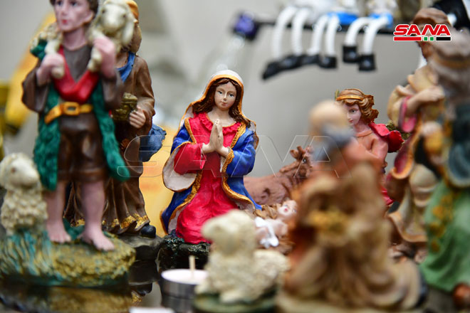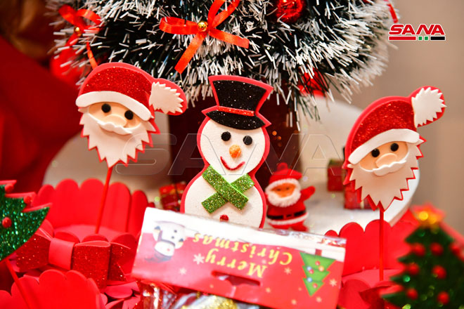 На Рождественской благотворительной ярмарке в церкви Святого Паисия Афонского в районе Джарамана провинции Дамаск, которая будет работать до воскресенья, молодые женщины представили свои изделия ручной работы, в частности рождественские атрибуты, различные украшения, сувениры и сладости.