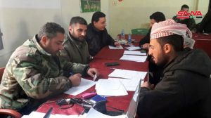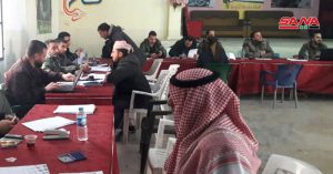 В центре города Аль-Букамаль на востоке провинции Дейр-эз-Зор продолжается процесс всеобъемлющего мирного урегулирования. Он включает разыскиваемых лиц, дезертиров и уклонистов от обязательной и резервной военной службы.