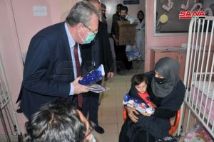 Российская парламентская делегация во главе с руководителем группы российско-сирийской дружбы в Государственной Думе РФ Дмитрием Саблиным посетила Университетскую детскую больницу в Дамаске и передала ее руководству 30 генерирующих кислород аппаратов и подарки для больных детей по случаю Рождества и Нового года.