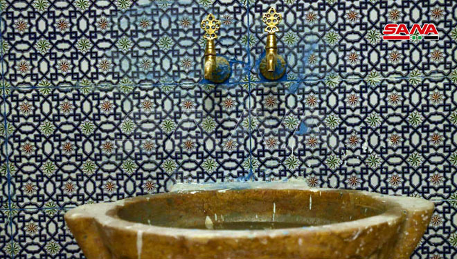 Чтобы добраться до “бани медников”, посетителям необходимо пройти по узким переулкам за Большой мечетью Омейядов, которые пересекаются с улицами рынков Аль-Махмас, Аль-Аттарин и Аль-Хаддадин, и дорогой, ведущей к церкви Аш-Шейбани и кварталу Аль-Фарафра. После этого можно оказаться перед деревянной дверью, которая приглашает спуститься на несколько ступенек, чтобы очутиться в просторном зале под старинными каменными сводами, украшенными медными люстрами, которые освещают это место.