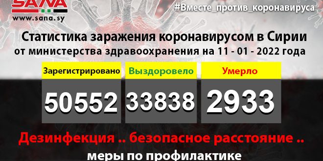 В заявлении ведомства, копию которого получило агентство САНА, указано, что число инфицированных, зарегистрированных в стране, на данный момент достигло 50 552, из них 33 838 человек вылечились, а 2 933 умерли.