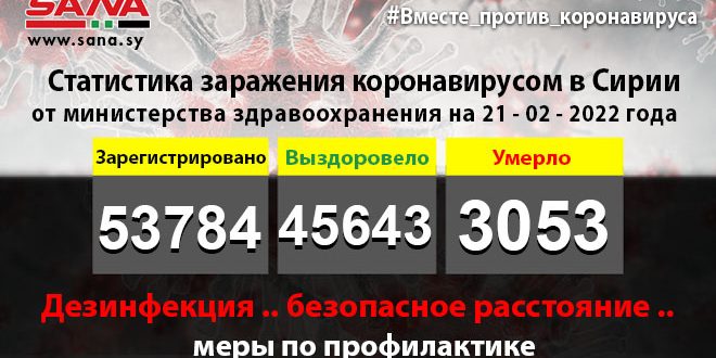 В заявлении ведомства, копию которого получило агентство САНА, указано, что число инфицированных, зарегистрированных в стране, на сегодняшний день достигло 53 784, из них 45 643 человека вылечились, а 3 053 умерли.