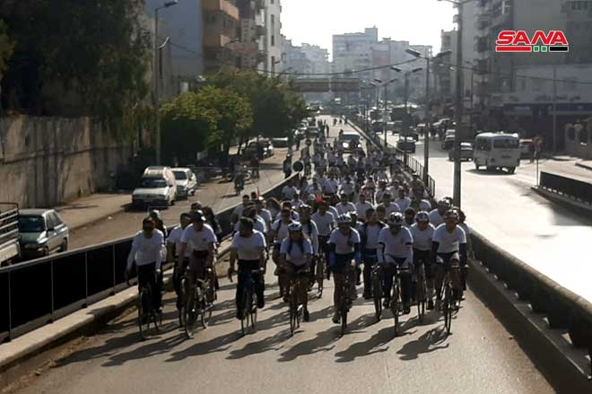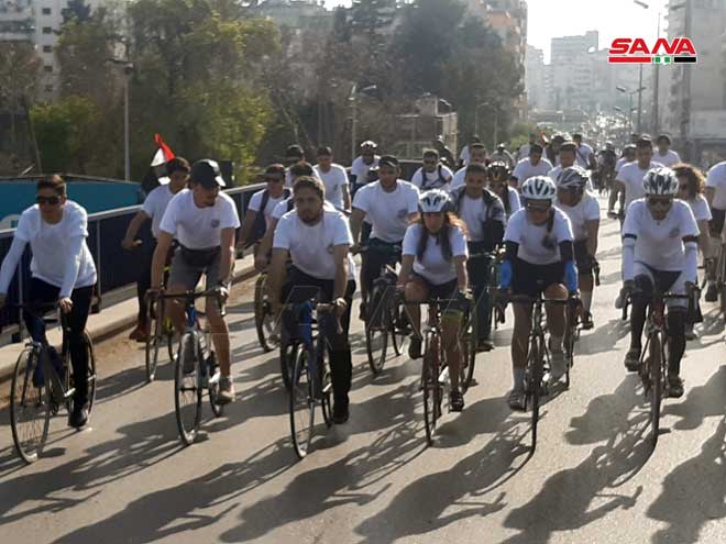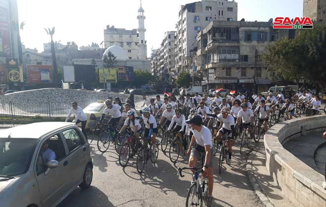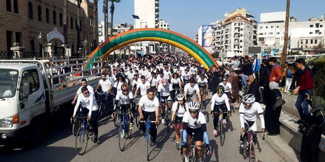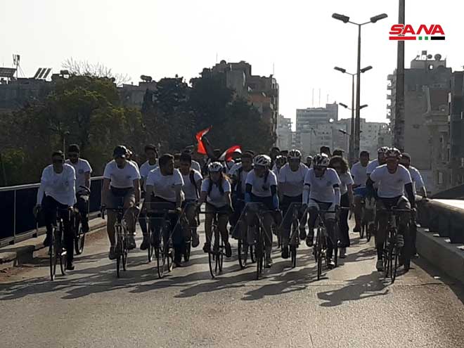 Отделение Национального союза сирийских студентов в Латакии провело сегодня веломарафон в честь празднования Дня арабского студента.