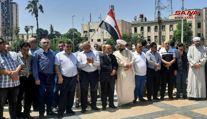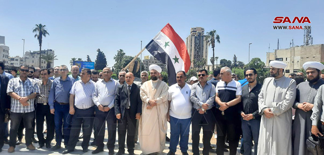В городе Алеппо на площади Саадаллы Аль-Джабери прошел массовый митинг протеста против турецкой оккупации, неоднократных нападений на безопасные районы и злонамеренных планов на севере Сирии.