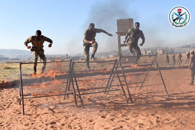 Заместитель главнокомандующего армией и Вооруженными силами САР, министр обороны генерал Али Махмуд Аббас в сопровождении офицеров Главного командования присутствовал на показательных выступлениях по случаю окончания курса спецподготовки курсантов Военного училища, а также курсанток Военного училища для девушек в рамках продолжающихся учений в армии и вооруженных силах страны.