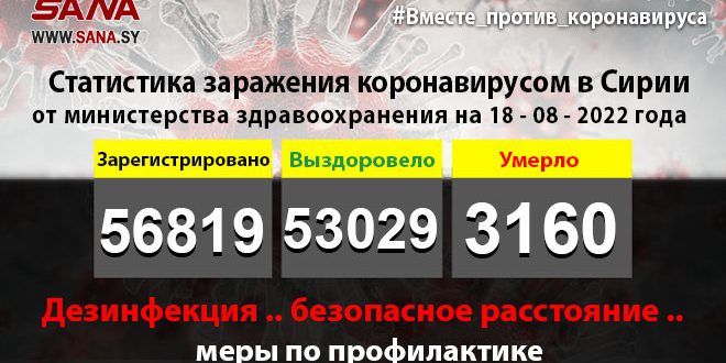 Ведомство в заявлении, копию которого получило агентства САНА, указало, что число инфицированных в стране на сегодняшний день достигло 56 819, из них 53 029 человек вылечились, а 3 160 умерли.