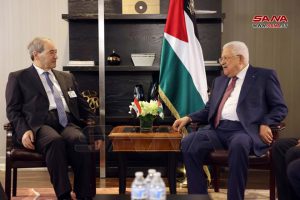 В кулуарах 77-й сессии Генеральной Ассамблеи Организации Объединенных Наций прошла встреча министра иностранных дел и по делам эмигрантов САР Фейсала Аль-Мекдада с президентом Палестины Махмудом Аббасом, она была посвящена последним событиям на оккупированной территории и продолжающимся израильским нападениям.