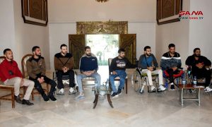 В провинции Хомс чествовали 20 бойцов Сирийской Арабской армии, получивших ранения в ходе боевых действий против террористов и добившихся хороших результатов на вторых Паралимпийских играх, которые прошли в прошлом месяце в Дамаске.