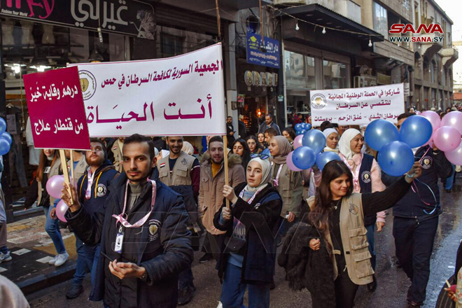 Глава отделения Сирийского онкологического общества в Хомсе Захи Аш-Шавваф в интервью корреспонденту агентства САНА отметил, что цель шествия – привлечь внимание к важности ранней диагностики злокачественных образований.