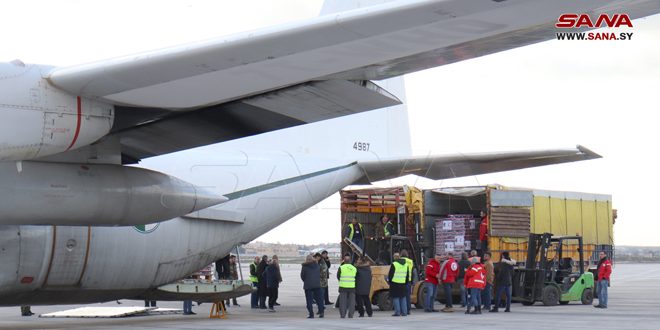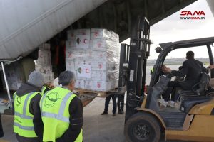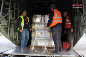 Второй самолет из Алжира прибыл в международный аэропорт Алеппо с 15 тоннами продовольственной помощи, матрасами и одеялами, предназначенными для пострадавших от землетрясения.