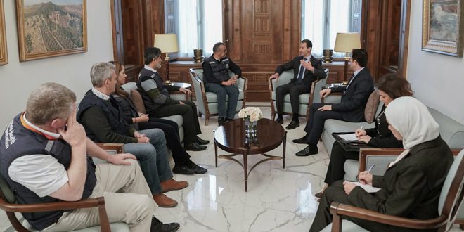 Президент Аль-Асад подчеркнул важность визита делегации в Сирию в сложившейся ситуации с точки зрения оценки необходимых медикаментов и оборудования для лечения пострадавших от землетрясения. Выражена признательность ВОЗ за поддержку сектора здравоохранения. Сирия рассчитывает на эффективное сотрудничество со Всемирной организацией здравоохранения на основе всеобъемлющего видения реалий сектора здравоохранения с устранением дефицита оборудования и лекарственных препаратов. Обеспечение этими средствами должно проводиться не только в чрезвычайных ситуациях, при стихийных бедствиях или эпидемиях, но и при лечении у сирийцев серьезных и хронических заболеваний, таких как онкология, диабет и другие.