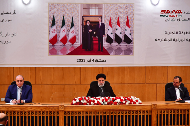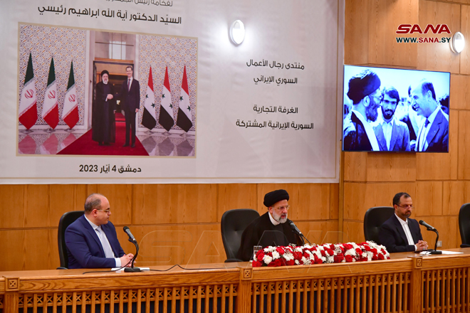 На бизнес-форуме, организованном Торговой палатой Сирии совместно с Сирийско-иранской торговой палатой, Раиси заявил, что воля обеих стран заключается в расширении всесторонних связей между ними. Задача предпринимателей – добиться претворения в жизнь того, о чем договорились руководства двух стран, это непременно изменит положение обоих народов к лучшему.