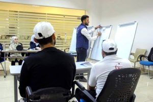 Раненым бойцам с полной инвалидностью, а именно потерявшим зрение и парализованным, с учетом их травм занятия по всем предметам профильные преподаватели проводят на дому или посредством дистанционного обучения в рамках широкого пакета образовательных услуг, предоставляемых проектом «Джарих Аль-Ватан» для тех, кто желает завершить образование и добиться своих целей.