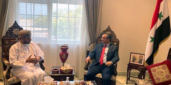 Посол Сирийской Арабской Республики в Султанате Оман Идрис Мейя обсудил с председателем Совета директоров Торгово-промышленной палаты Омана Фейсалом бен Абдаллой Аль-Равасом развитие двустороннего сотрудничества в различных секторах экономики.