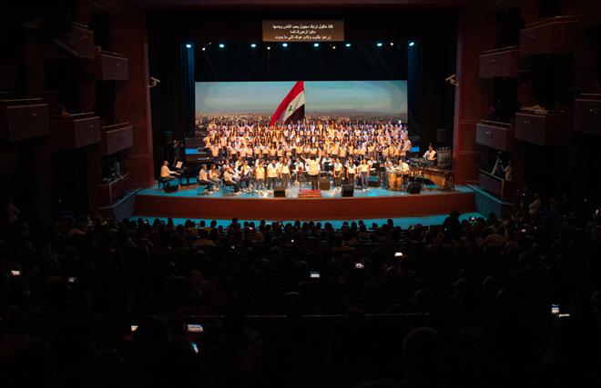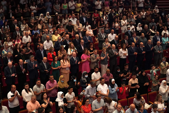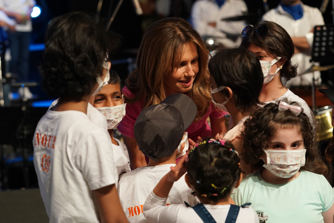 По завершении второго года, полного достижений и проблем, Национальный центр стволовых клеток «Хайят» в рамках Национальной программы по борьбе с раком провел вечер «Путешествие жизни» в присутствии первой леди Асмы Аль-Асад на сцене Дома культуры и искусства имени Аль-Асада.