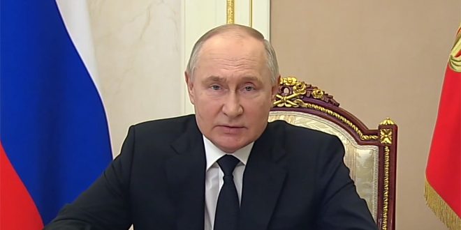По словам российского лидера, абсолютно ясно, что ужасное преступление в “Крокусе” – это акция устрашения, и возникает вопрос, кому это выгодно. “Это злодеяние может быть лишь звеном в целой серии попыток тех, кто с 2014 года воюет с нашей страной руками неонацистского киевского режима”, – сказал Путин. Президент отметил, что предпринимаемые Киевом попытки стабилизации фронта успеха не имеют, РФ удерживает инициативу в СВО. “Отсюда и попытки зайти и закрепиться на приграничных территориях, обстрелы, в том числе с использованием систем залпового огня, мирных кварталов, объектов гражданской, в том числе энергетической инфраструктуры, попытки ракетных ударов по Крымскому мосту и самому полуострову”, – сказал он. “В этот ряд вполне логично вписываются и кровавые акции устрашения, подобные теракту, совершенному в Москве”, – добавил Путин.