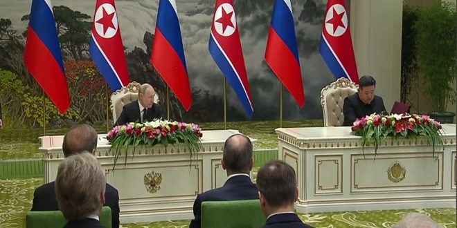 Чен Ын подчеркнул, что новое соглашение предполагает развитие сотрудничества между двумя странами, в том числе в военном деле, и ускорит создание нового многополярного мира, отметив, что Москва и Пхеньян продолжат противостоять санкциям, которые Запад использует в качестве инструмента, чтобы сохранить свою гегемонию.