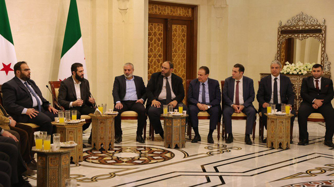 Глава новой администрации Ахмад Аш-Шараа и министр экономики встретились с бизнесменами и промышленниками провинций Алеппо и Идлиб .