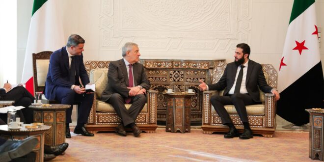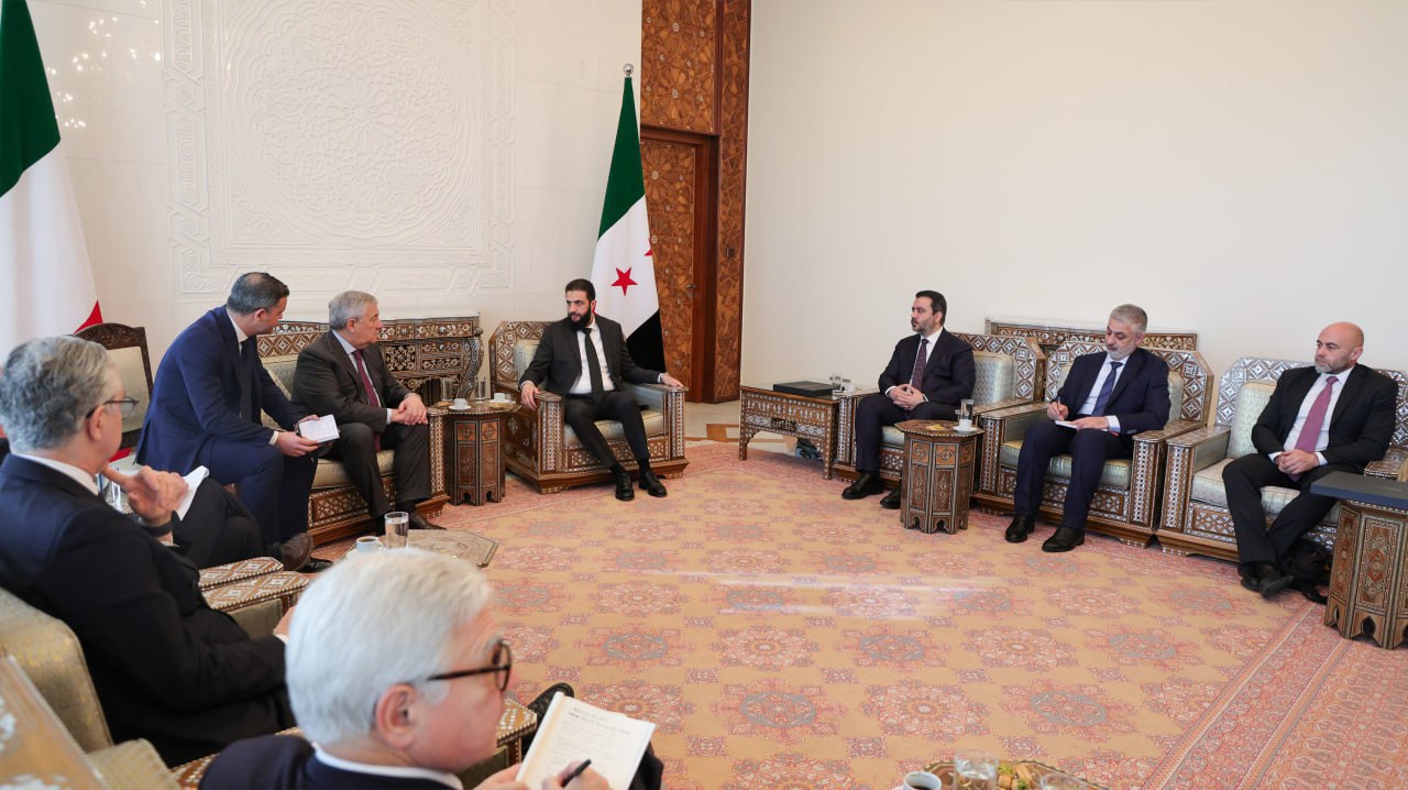 Глава новой администрации Сирии Ахмад Аш-Шараа и министр иностранных дел Асаад Аш-Шейбани приняли в Народном дворце делегацию Итальянской Республики во главе с министром иностранных дел Италии Антонио Таяни.